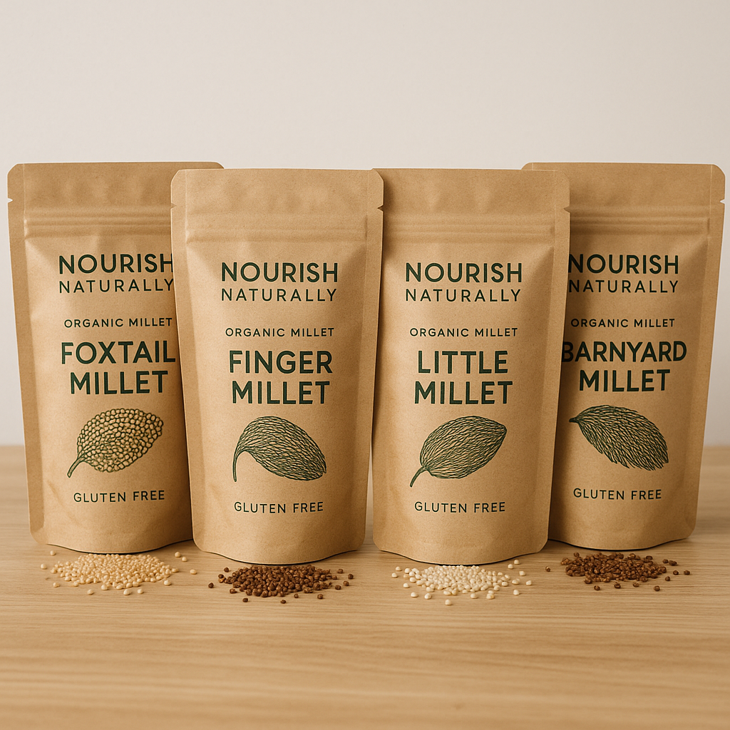 At Nourish Naturally, we believe that food should not only nourish the body but also honor the Earth. Rooted in tradition and powered by nature, our mission is to bring you the finest organic millets—wholesome, gluten-free grains that have sustained generations with their rich nutrition and incredible versatility.